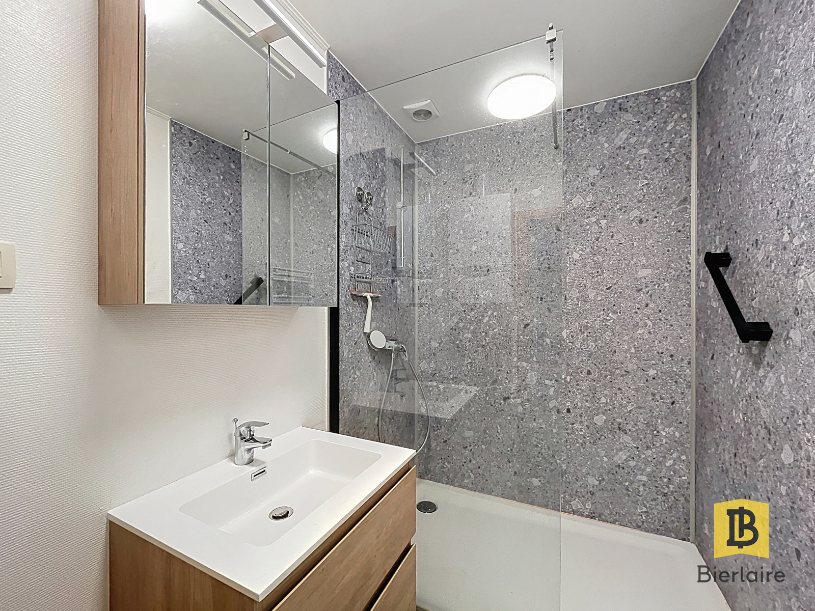 Il se compose comme suit : Un hall d’entrée, un séjour ouvert sur une cuisine entiérement équipée, une buanderie, deux chambres, une salle de douche (dont une chambre d’enfant ou bureau) et un W.C séparé.