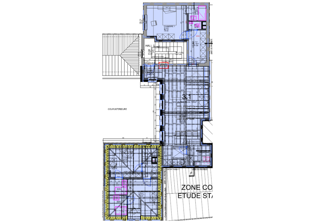 Appartement 3.3 – 3e étage – 128 m² : Un séjour, un hall de nuit desservant une première chambre de 13 m², une salle de douche attenant ainsi qu’un WC séparé. Vous y trouverez également une buanderie, ainsi qu’un deuxième hall de nuit desservant deux chambres, chacune équipée de sa propre salle de douche.