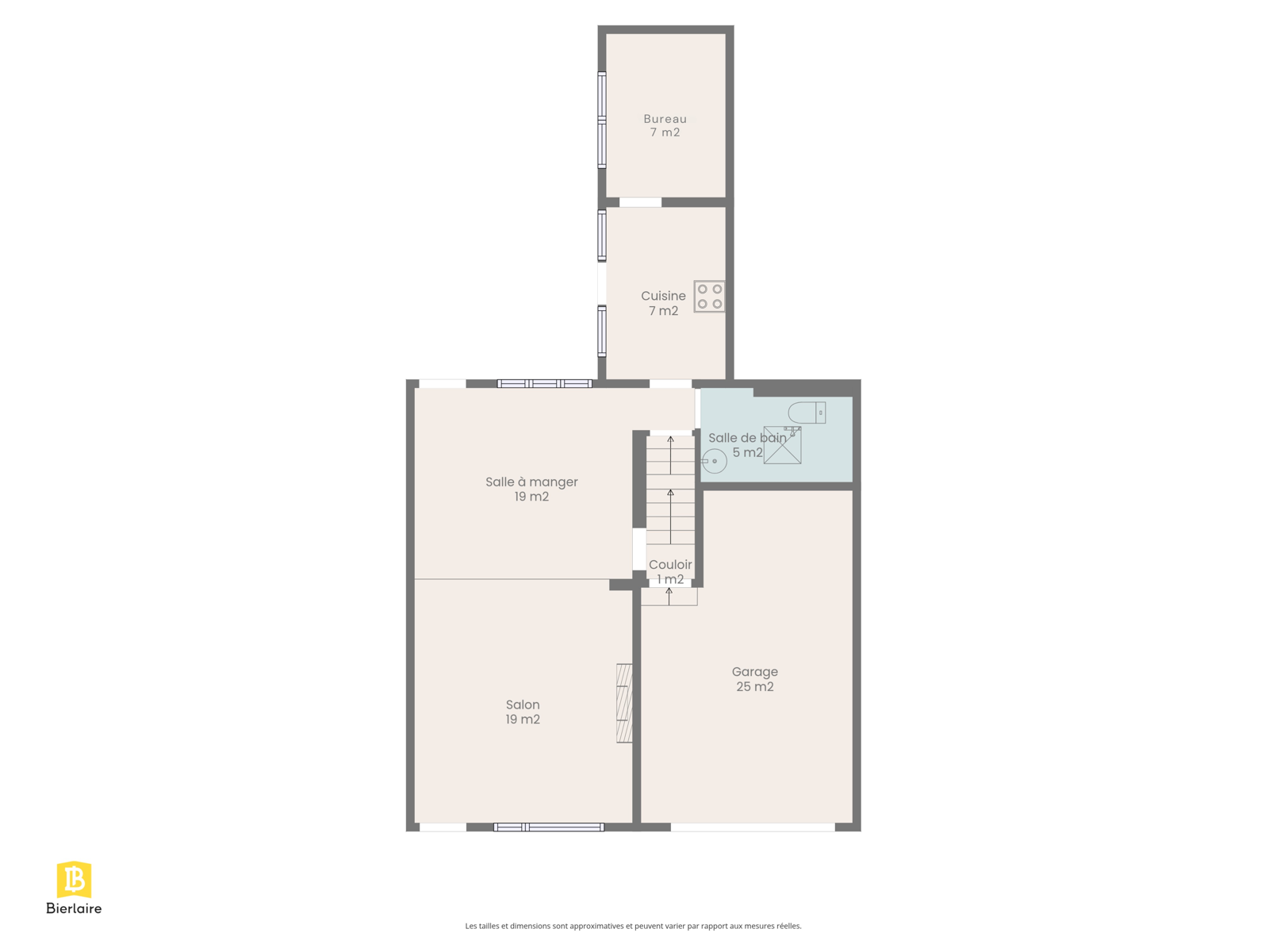 Dès l’entrée, vous serez séduit par un spacieux séjour baigné de lumière, offrant un accès direct à une agréable terrasse et à un beau jardin. Le rez-de-chaussée comprend également une salle de douche avec WC, une cuisine équipée ainsi qu’un bureau.