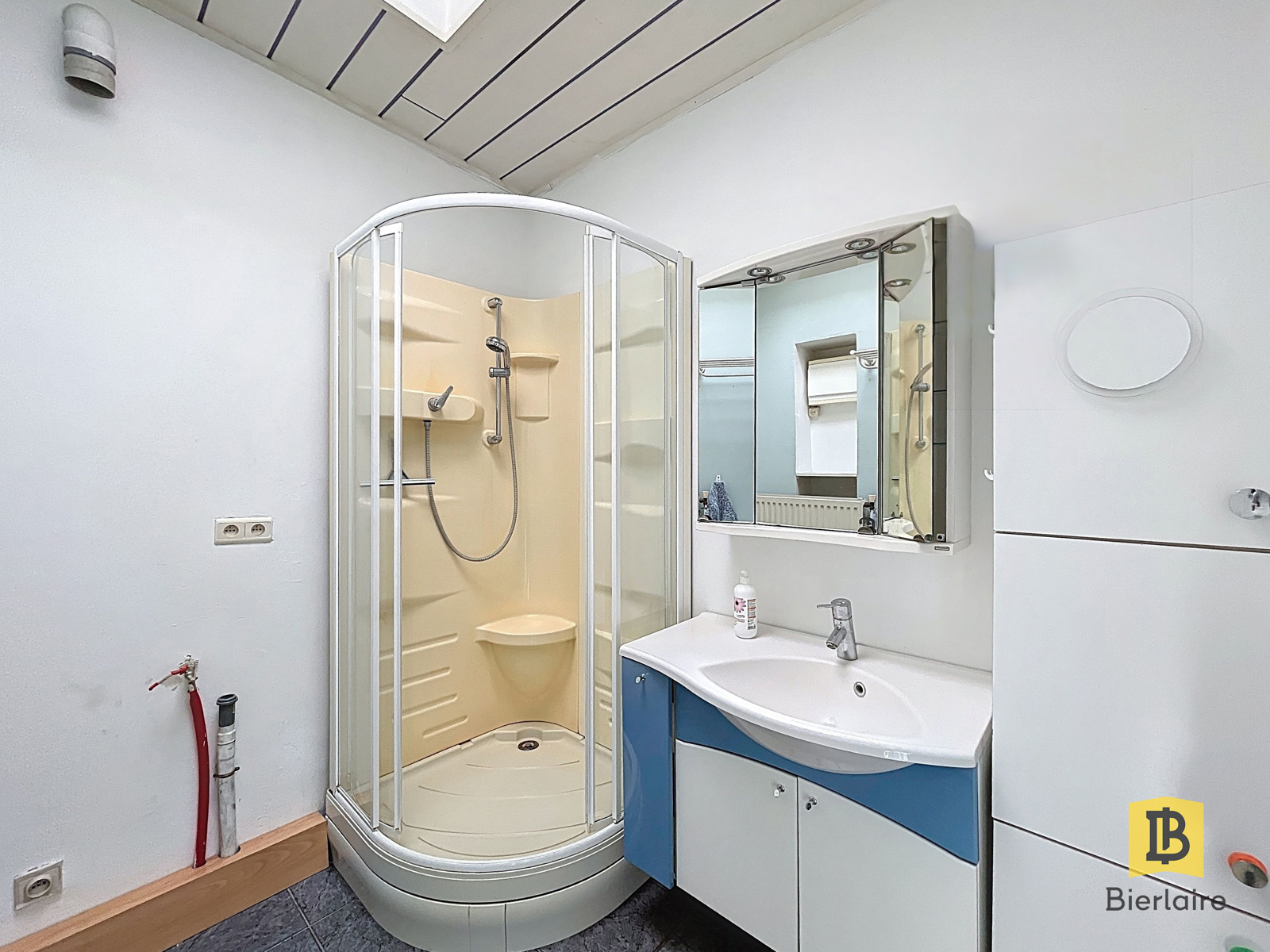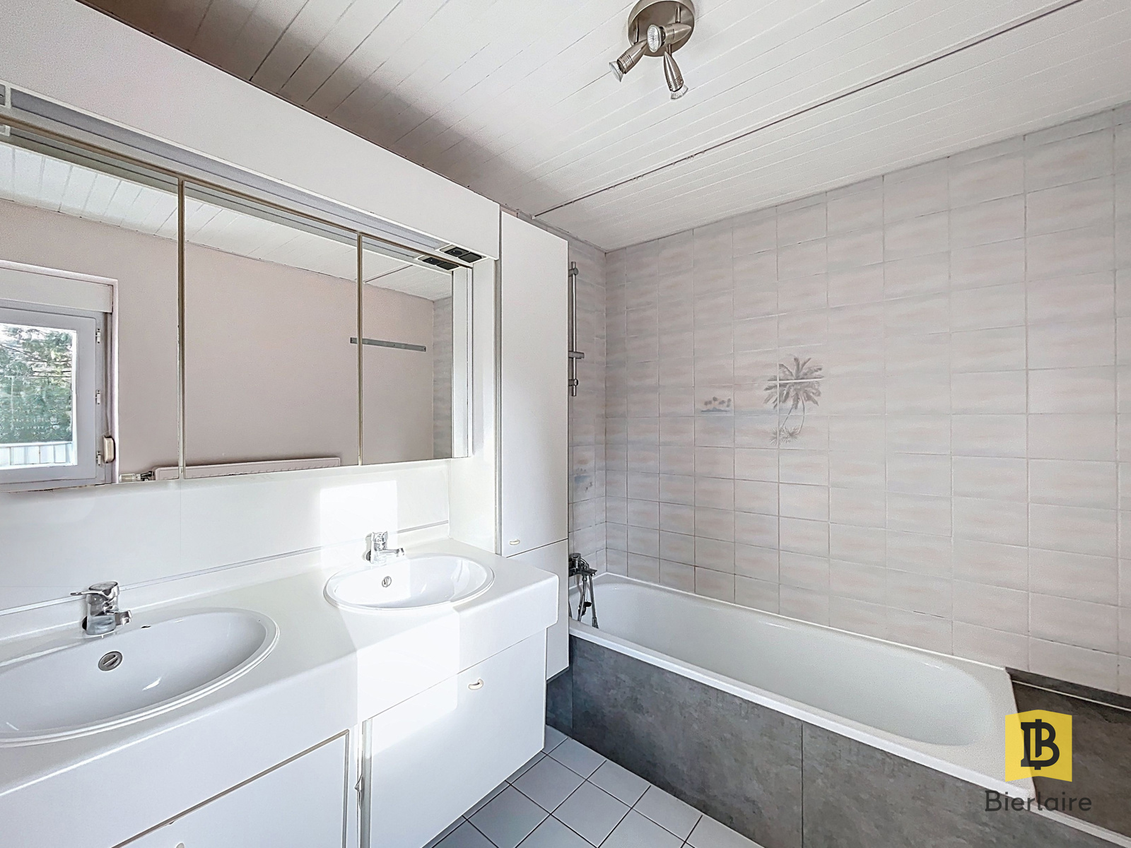 Au premier étage, vous trouverez une première chambre ainsi qu’une salle de bain.