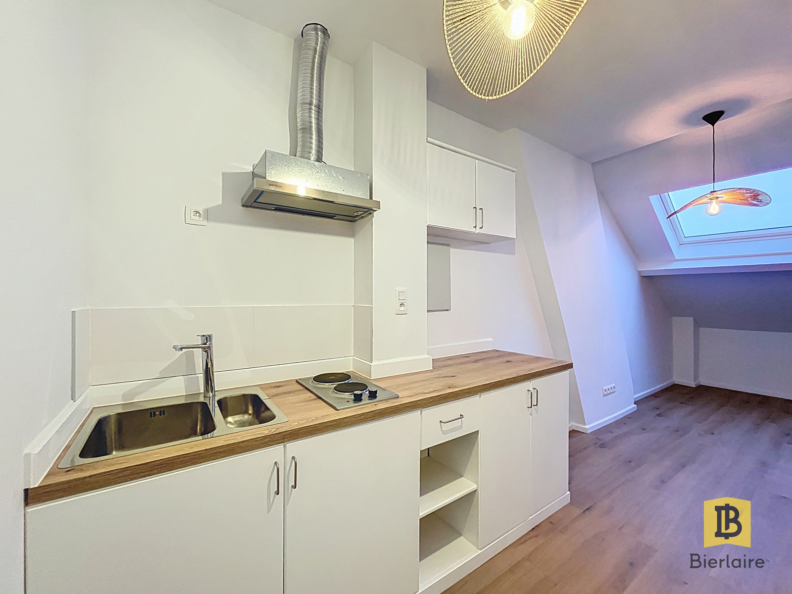 Studio à louer à proximité de la gare de Mons. Ce studio se trouve au 3ᵉ étage d’un immeuble rénové et dispose d’une chambre séparée. Il se compose d’un séjour lumineux, d’une cuisine équipée avec kitchinette, d’une salle de douche avec WC et d’une chambre.
