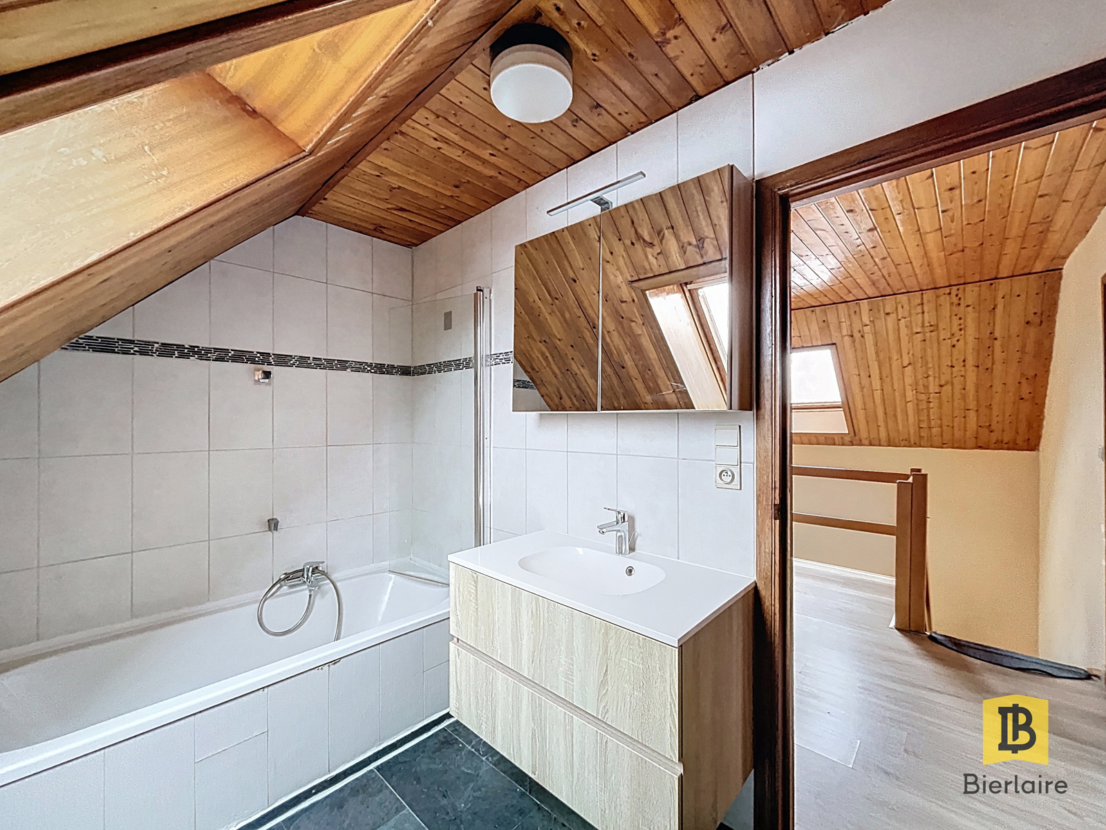 Le bien se compose, au rez-de-chaussée, d’un hall d’entrée avec espace vestiaire, d’un WC séparé et d’un séjour lumineux ouvert sur une cuisine équipée.