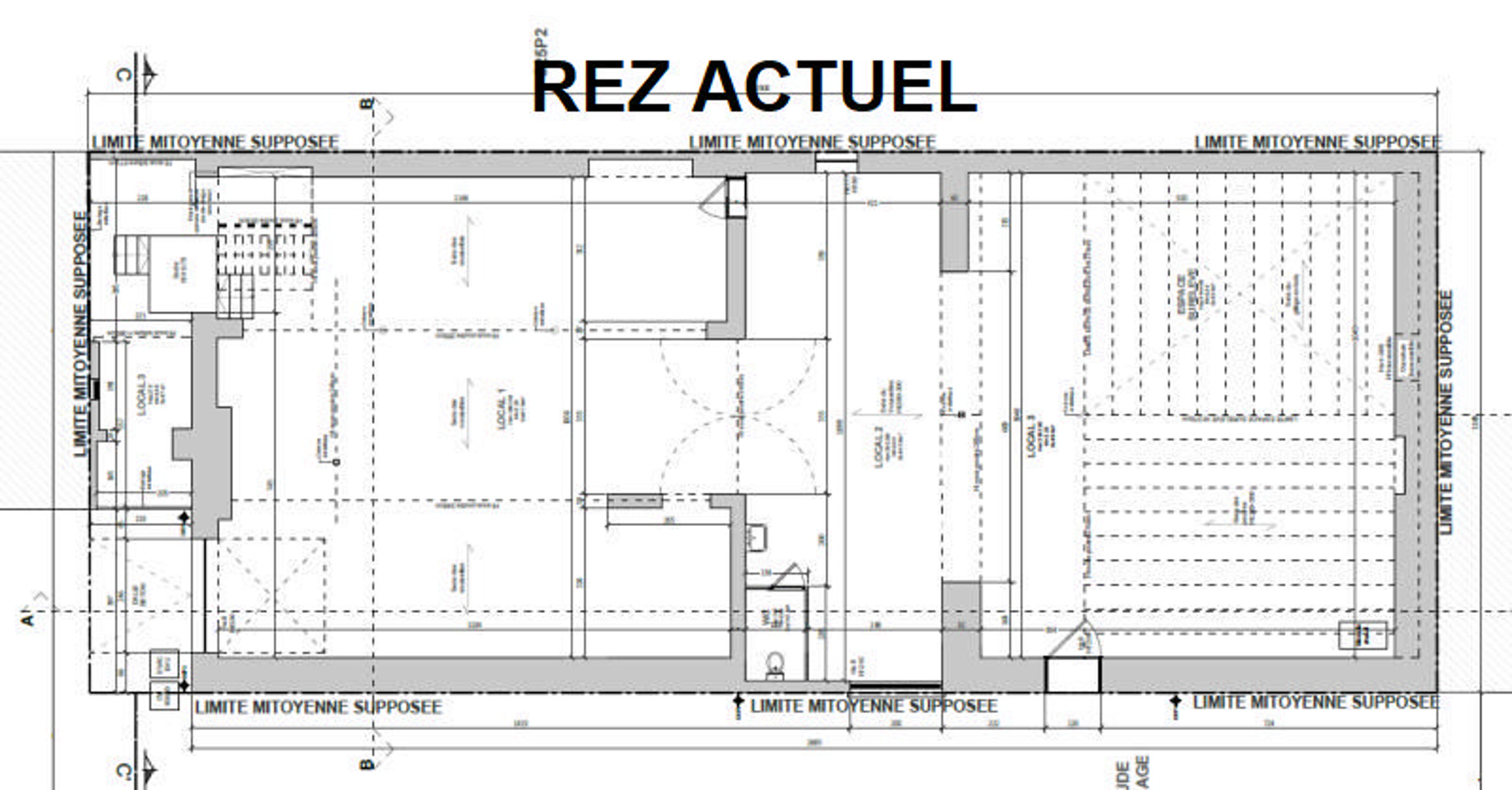 REZ: 259 m² de surface avec un W.C. séparé, un monte-charge et une porte de garage électrique.
