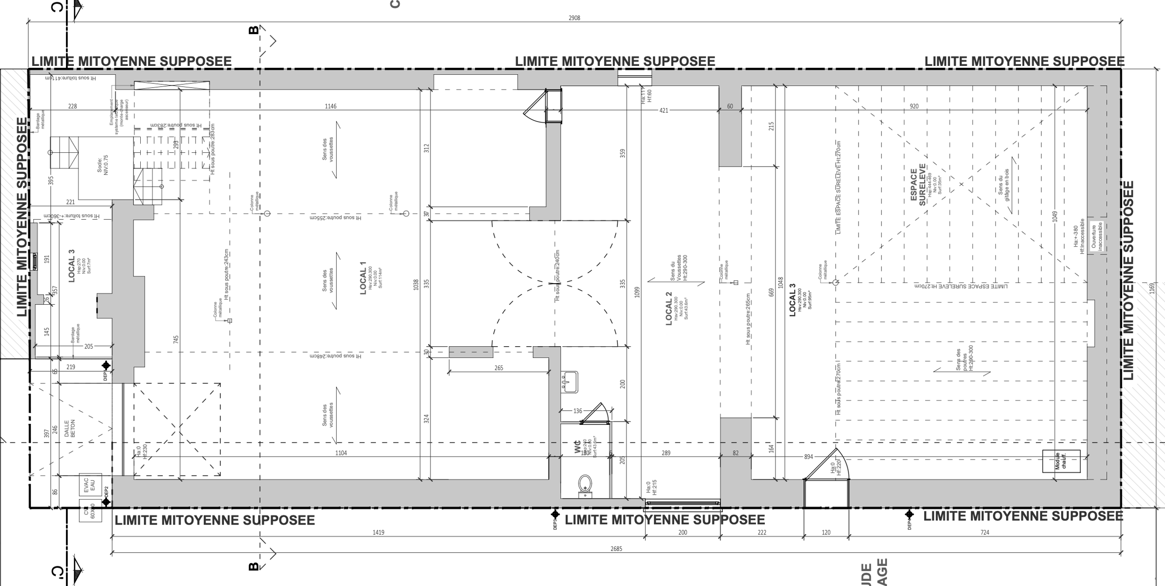 Entrepôt de 570 m² (voir plans) composé: