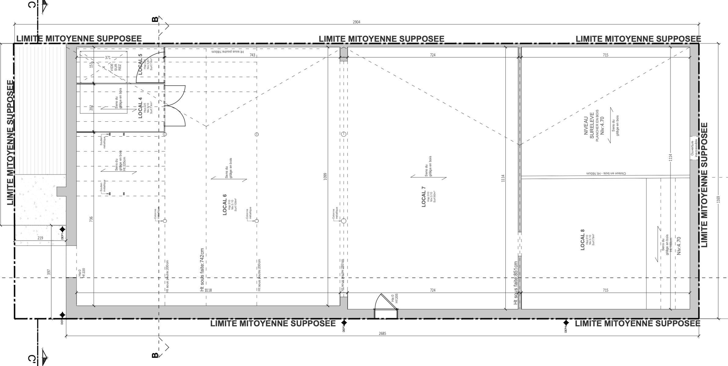 Le plancher pour la partie de droite est en bois ce qui peut permettre l’ouverture de celui-ci pour plus de hauteur ( déjà ouvert à moitié).