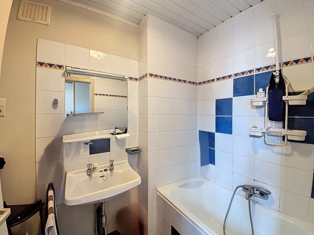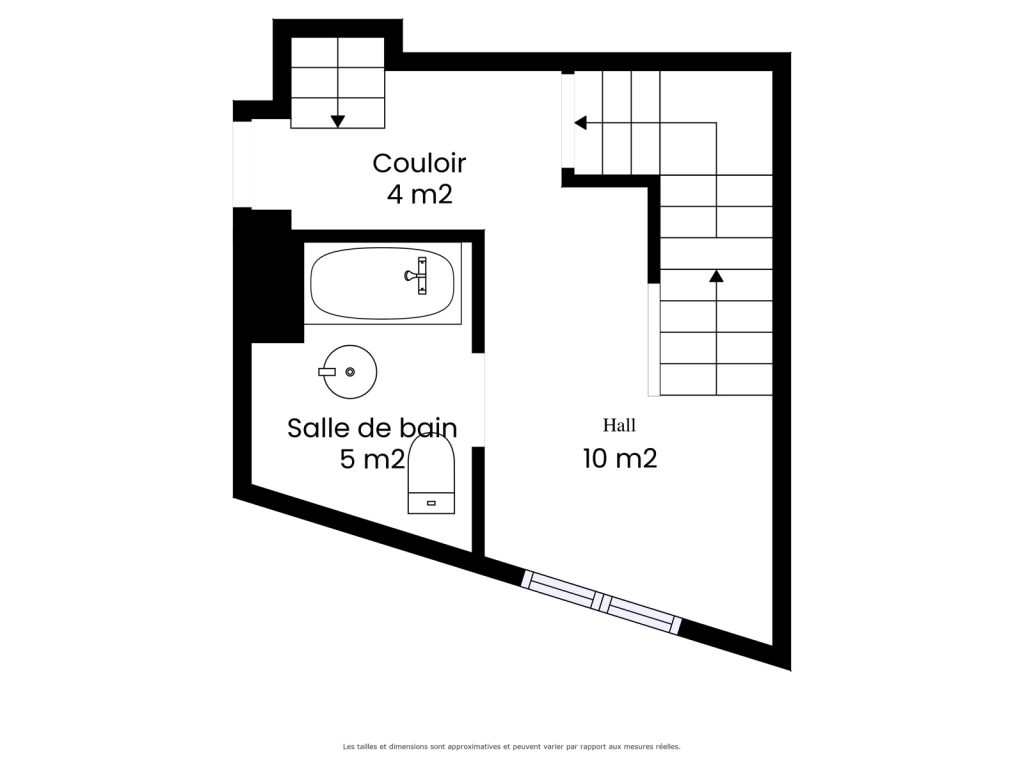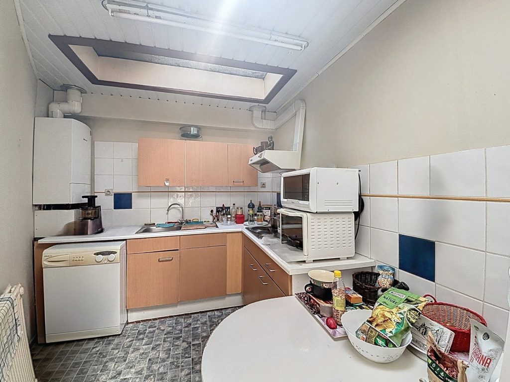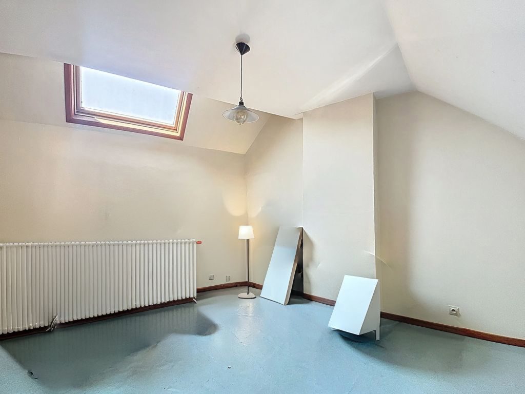 – Étage : Appartement en duplex avec hall, salle de bain, cuisine, séjour et chambre sous combles.