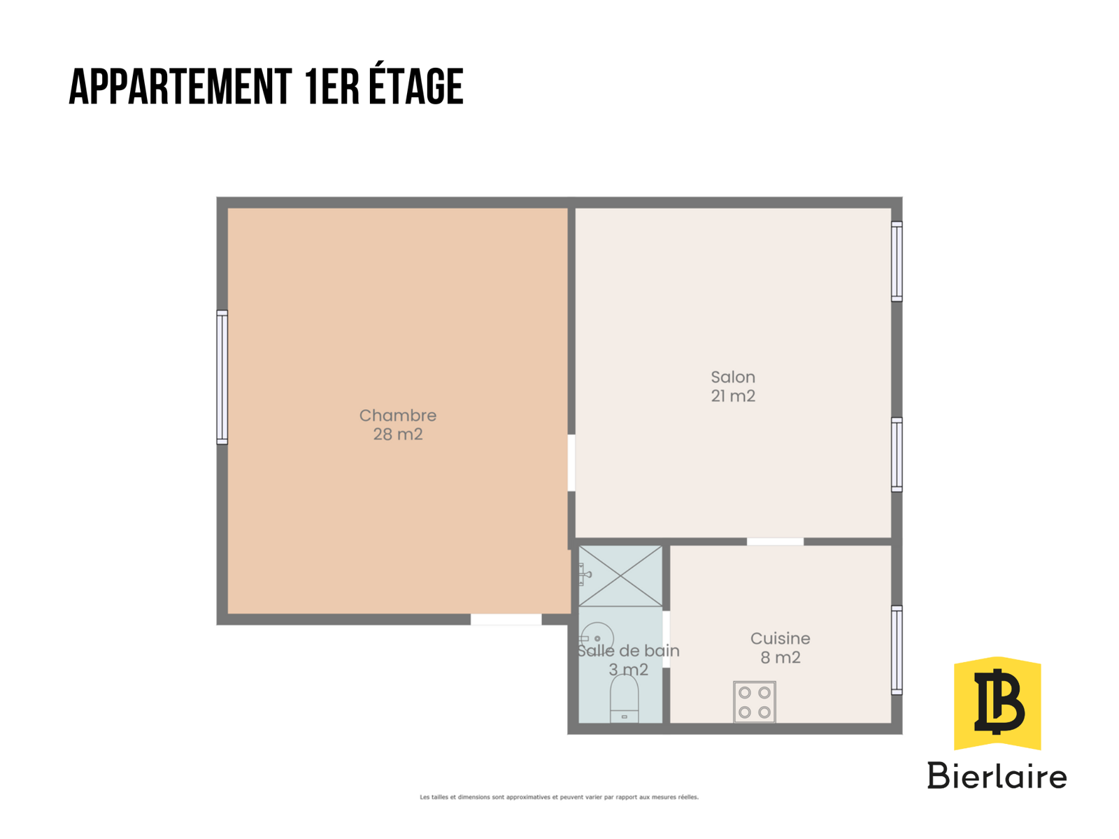 – Appartement 1 chambre spacieux de ±60 m², lumineux et fonctionnel.