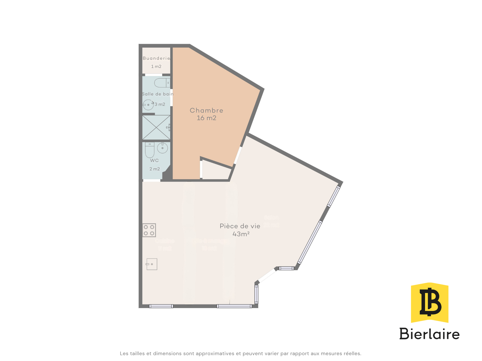 – Vaste pièce de vie de 43 m² avec espace salon, cuisine et salle à manger