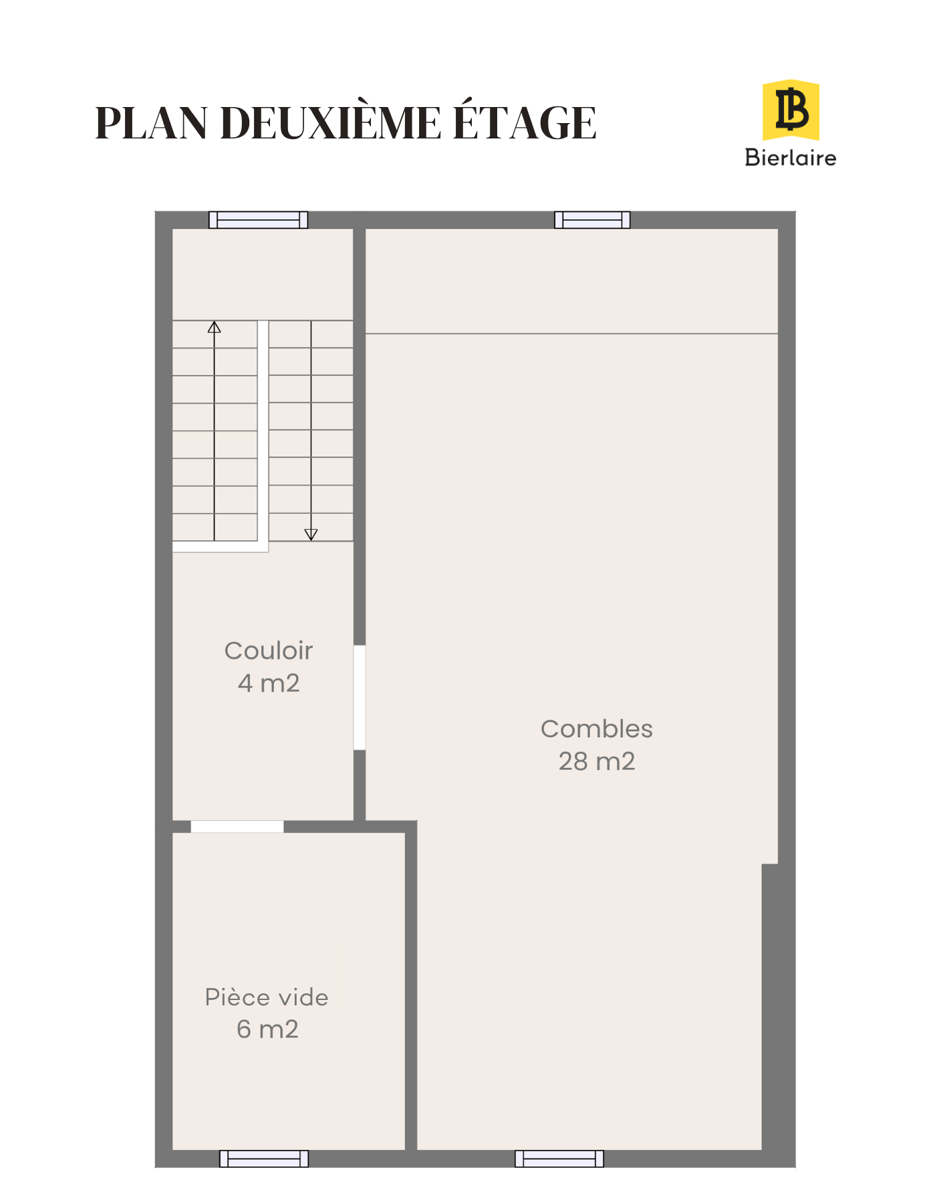 Au deuxième étage : une pièce de 6 m² et des combles de 28 m² offrant un beau potentiel d’aménagement.