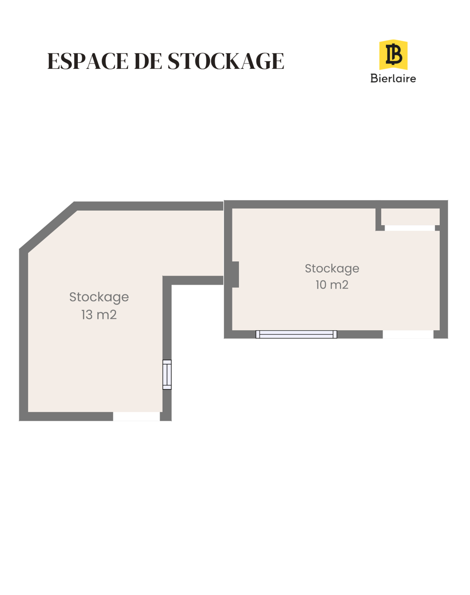 Deux espaces de stockage de 13 m² et 10 m² ainsi qu’une cave complètent le bien.