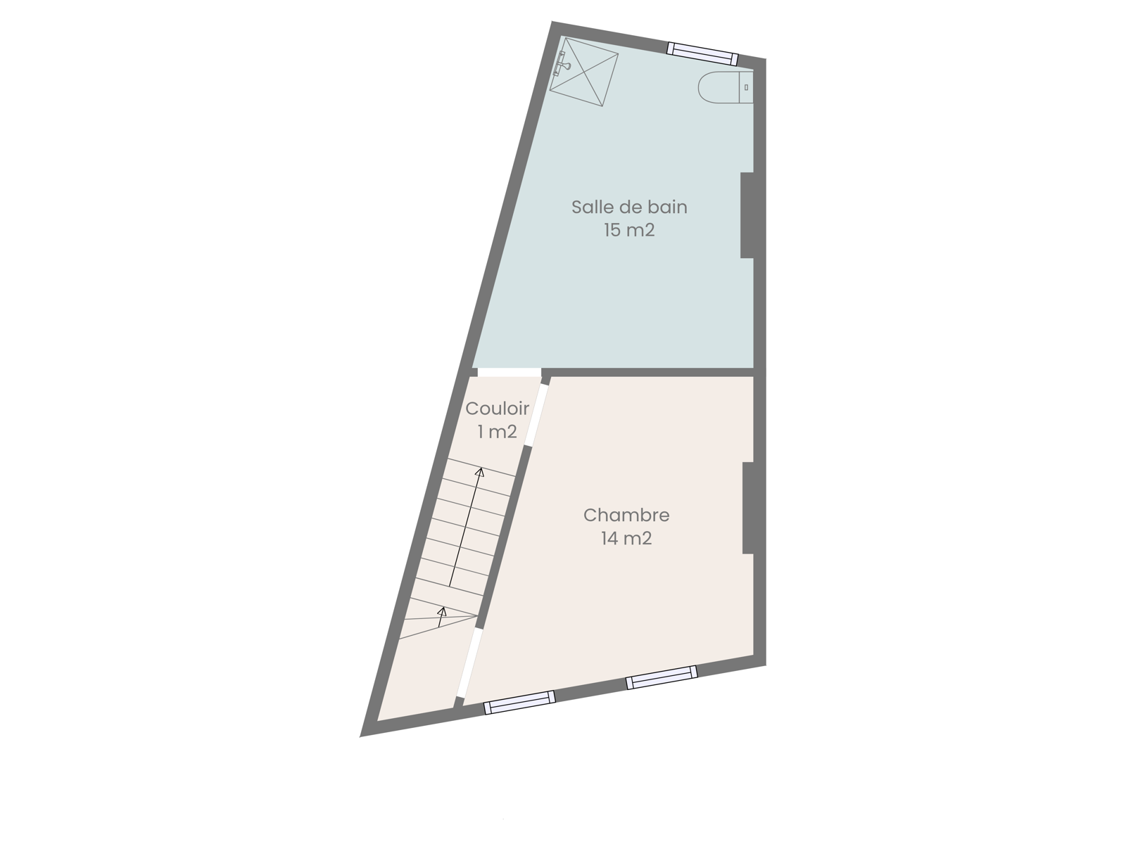 À l’étage, vous découvrirez deux chambres de 14 m² et 15 m². Cette dernière chambre dispose actuellement d’une douche et offre la possibilité d’être repensée en suite parentale avec espace nuit et salle de bains privative.