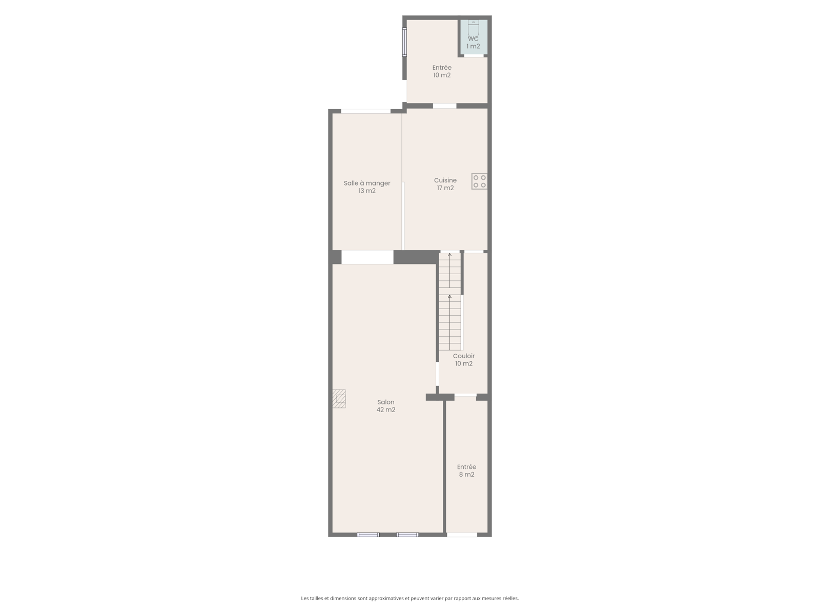 - Sas d’entrée de 8 m², composé d’une première porte vitrée et d’une seconde porte menant au hall