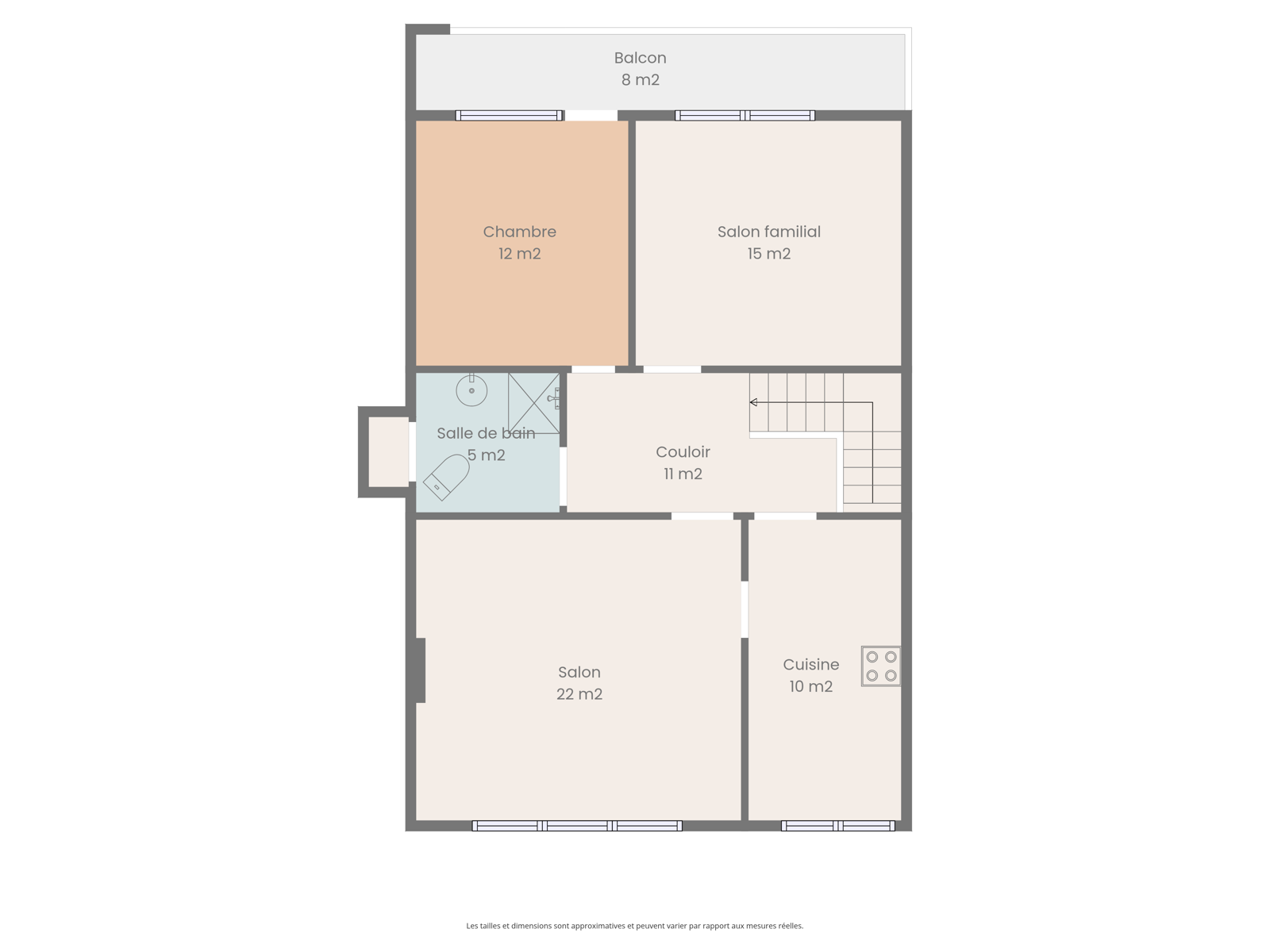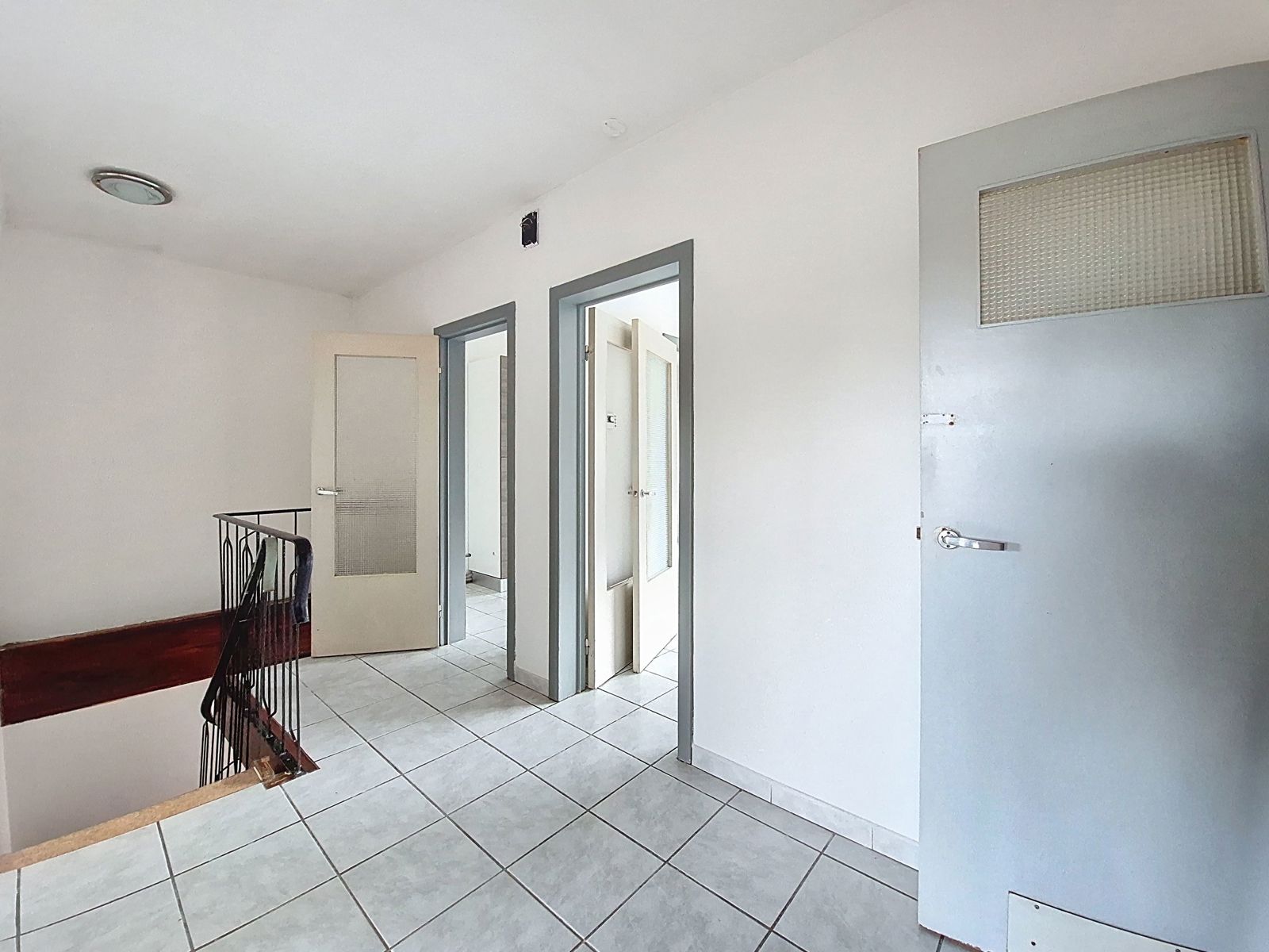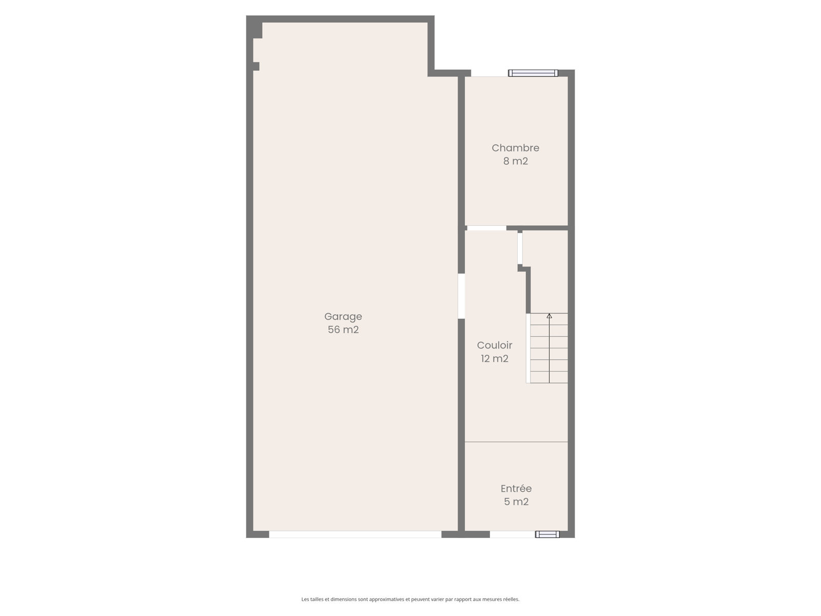 La maison se compose, au rez-de-chaussée, d’un hall d’entrée spacieux, d’un espace polyvalent et d’un vaste garage. À l’étage, on retrouve un couloir desservant deux chambres, une salle de bain, un salon lumineux et une cuisine fonctionnelle.