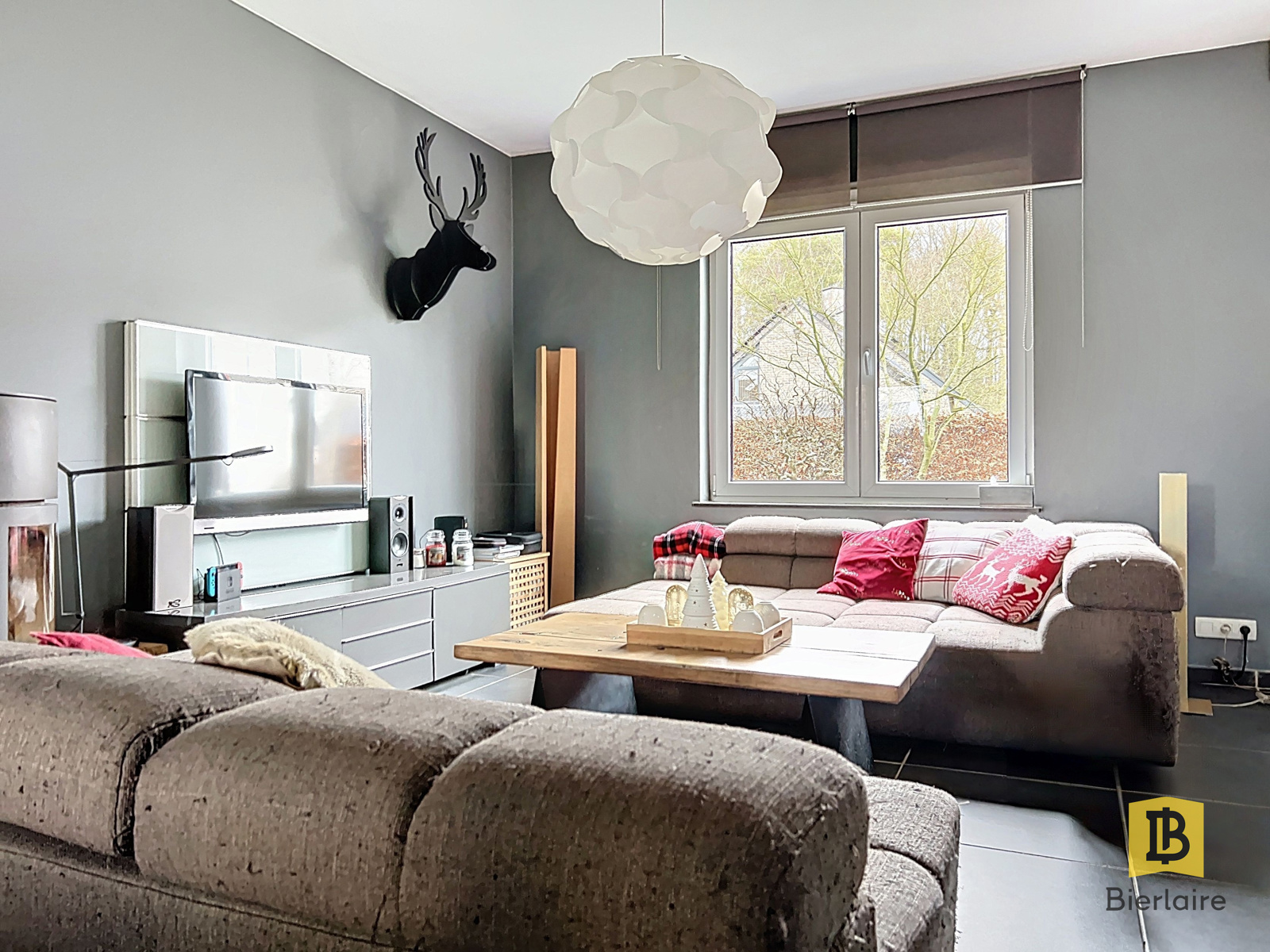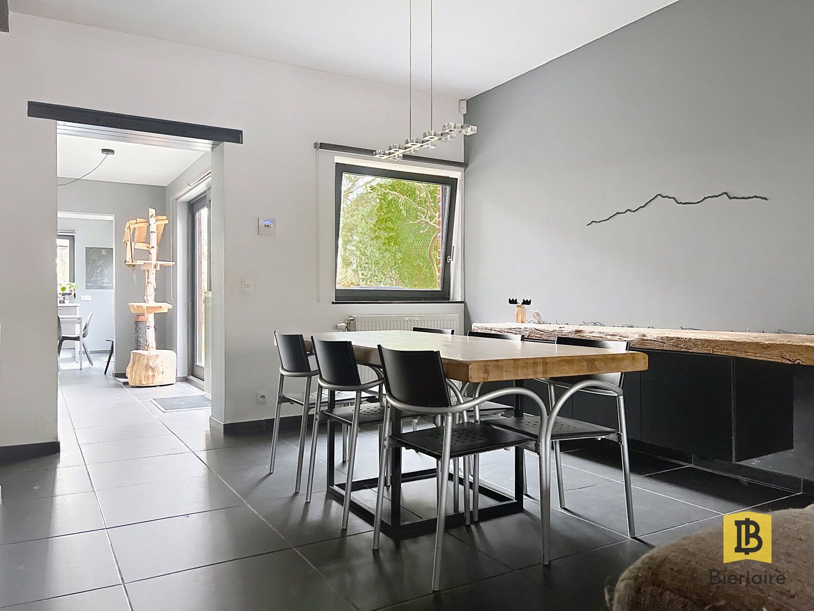 - Un salon / salle à manger de 37 m² avec cuisine équipée de ± 15 m² ouvrant directement sur le jardin et la terrasse de 45m²,