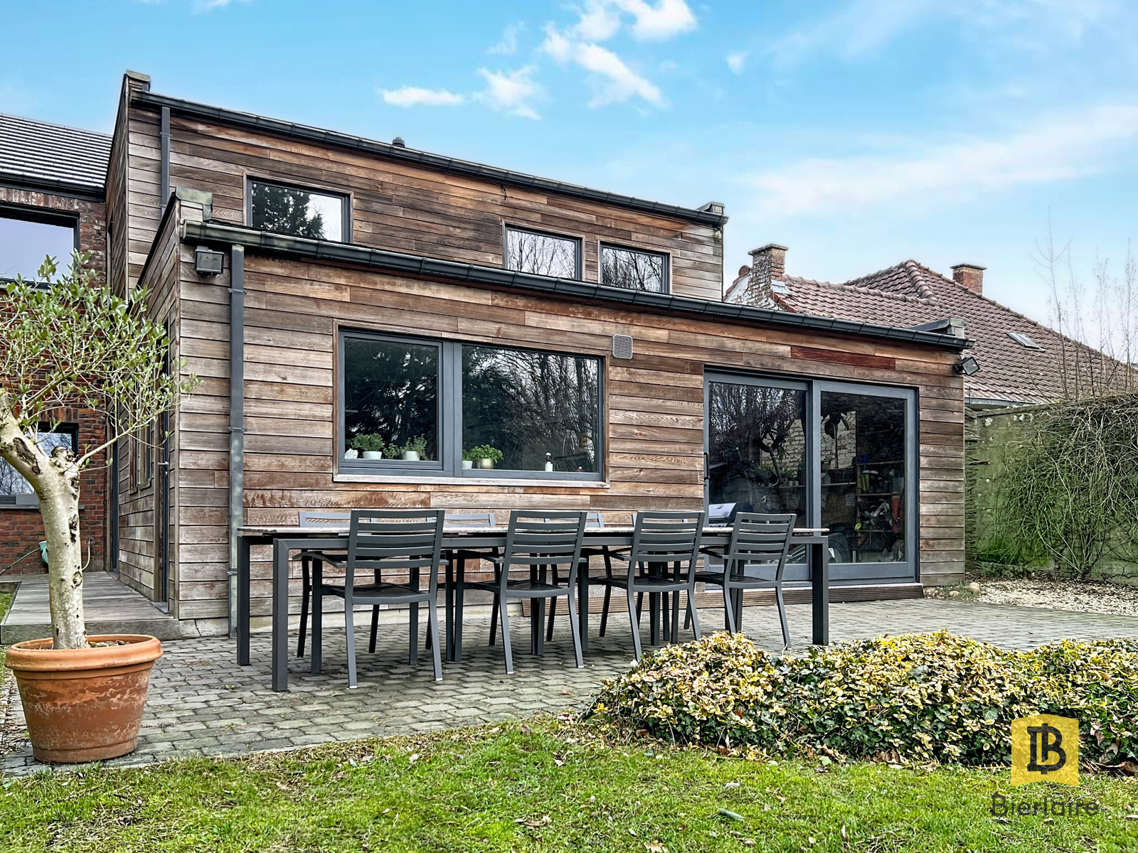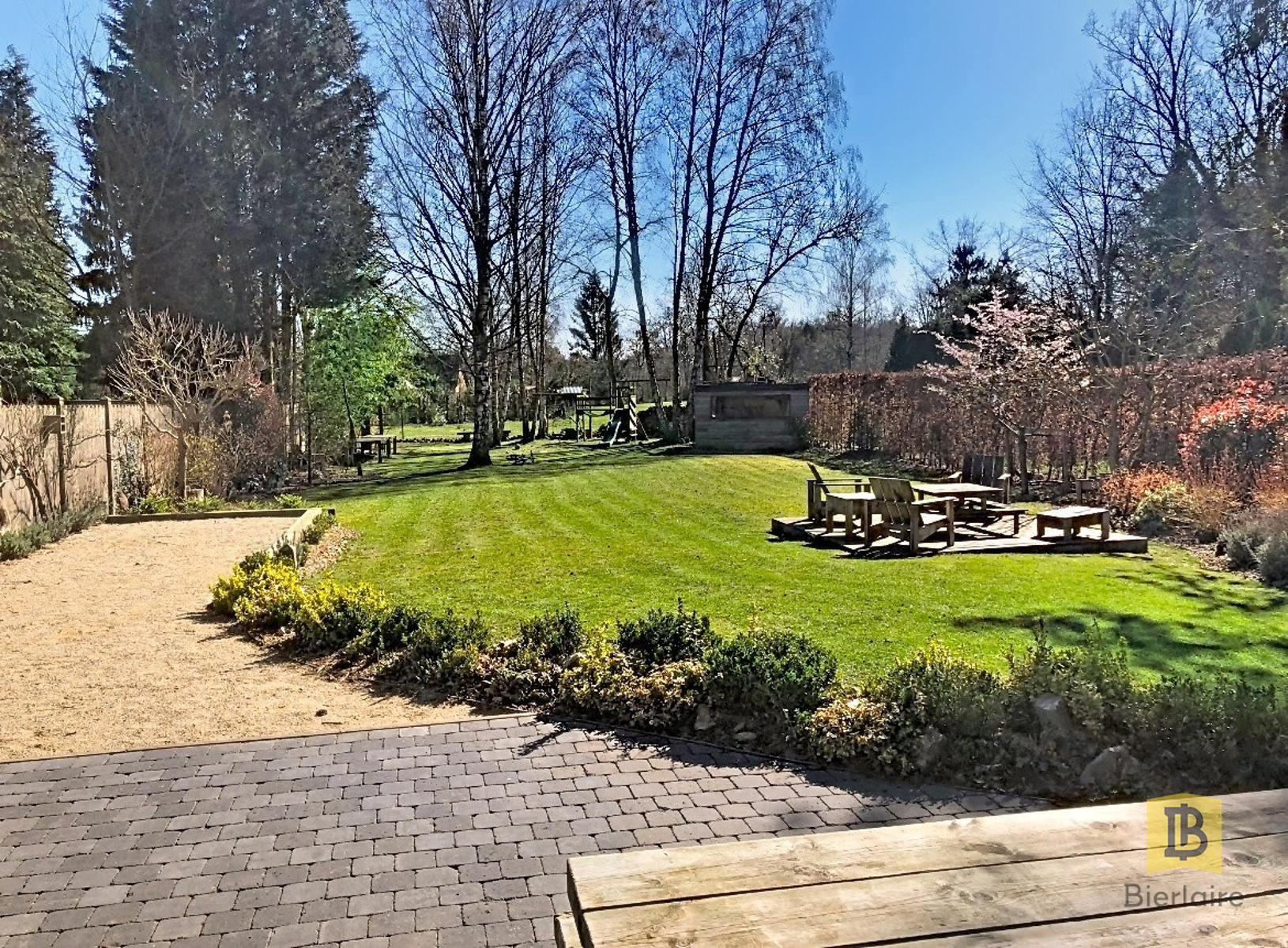 - Une agréable terrasse pavée et une terrasse en îlot dans le jardin,