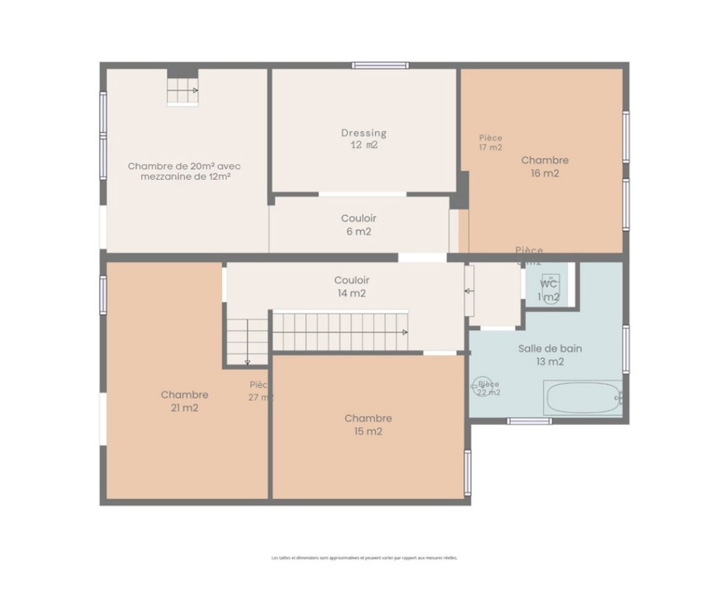 - Une salle de bain de 13 m²,