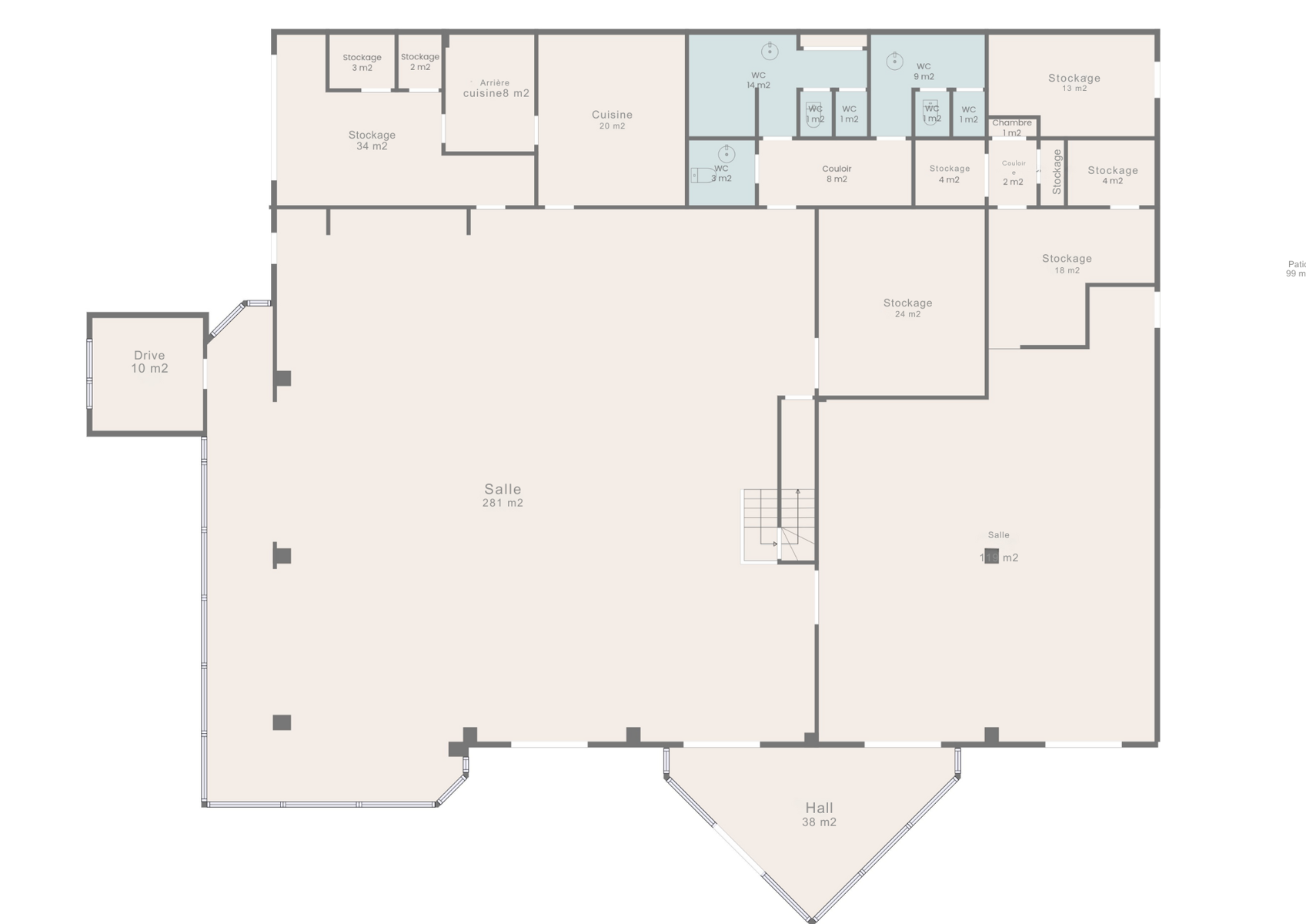 – Grande salle de réception principale : 281 m².
