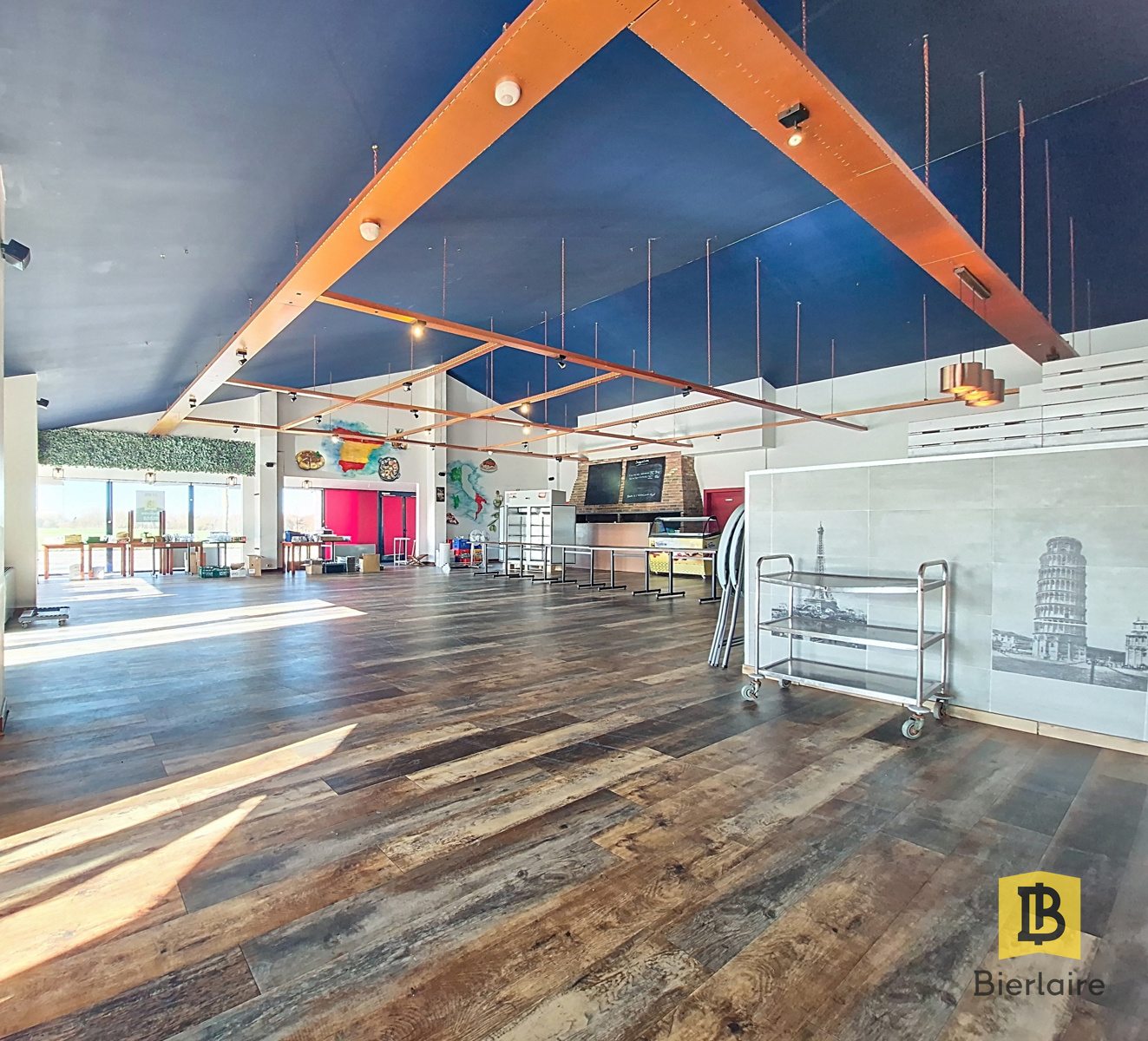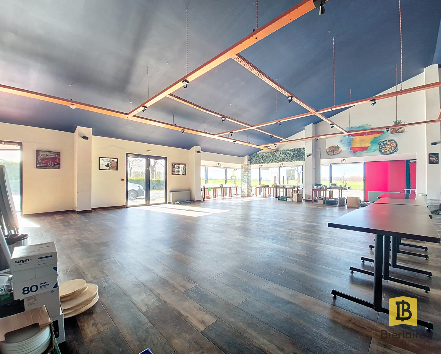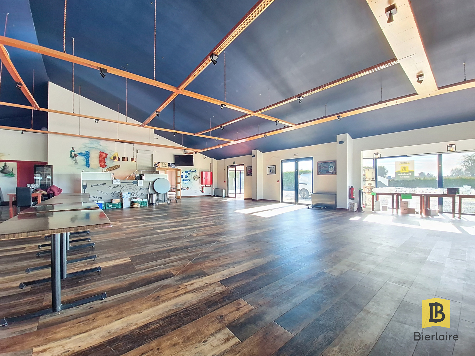 Cette superbe salle de fête offre de beaux volumes, une excellente fonctionnalité et de nombreuses possibilités d’exploitation.