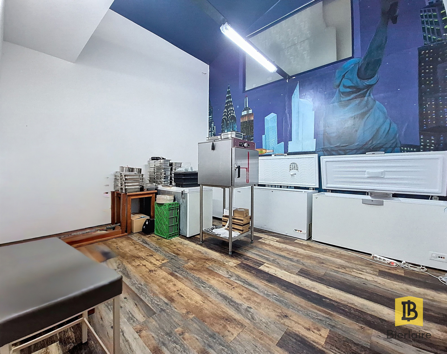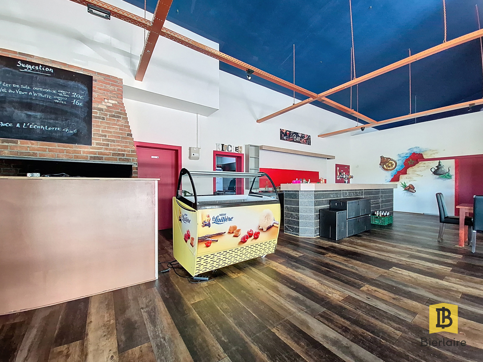 Un bar intégré, parfaitement agencé pour le service des boissons, ainsi qu’un coin réception/encaissement complètent l’ensemble.
