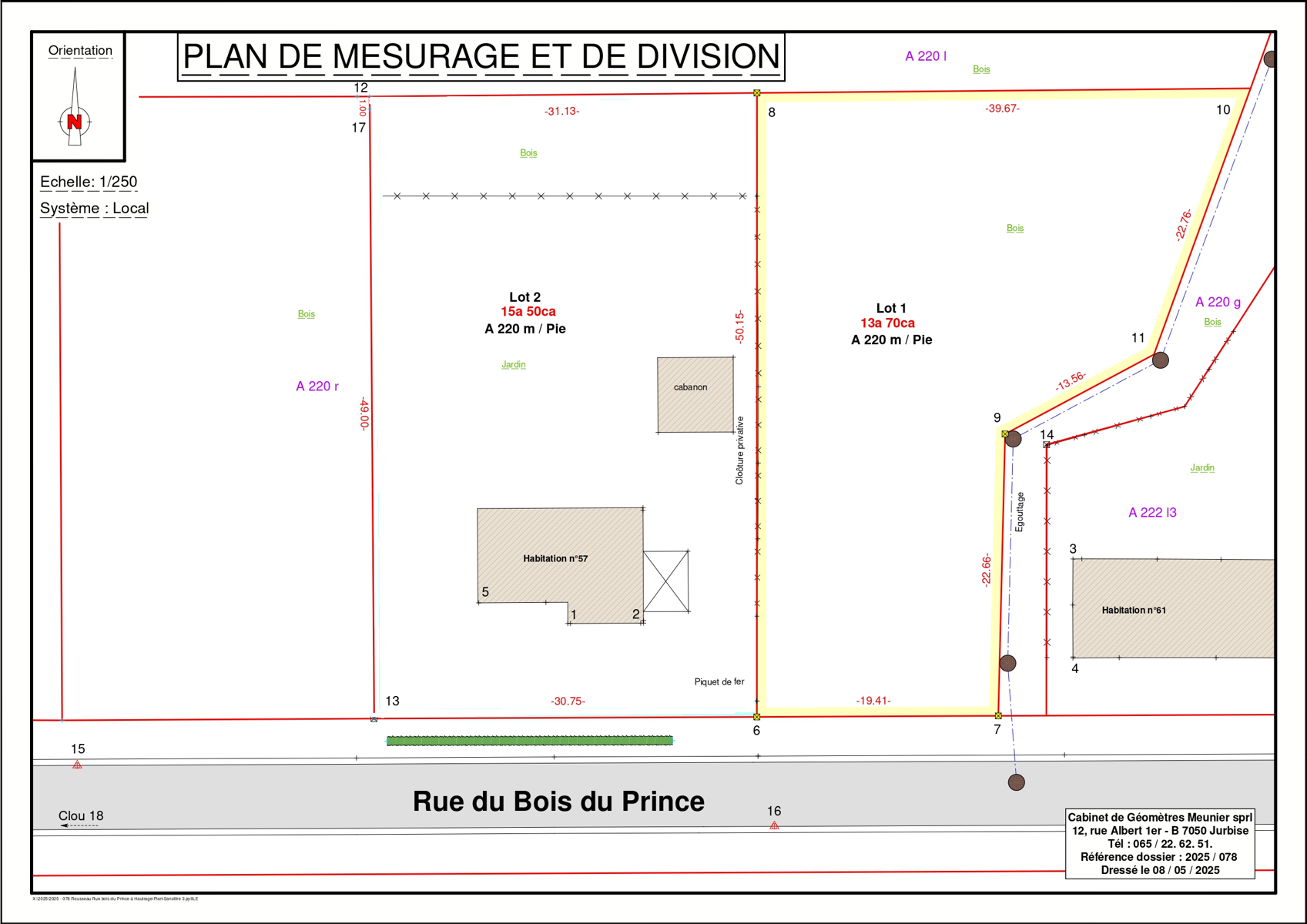 Un terrain à bâtir qui sera à déboiser entièrement, d’ une superficie de 13,70 ares et qui est situé dans un quartier paisible, proche des commodités (écoles, commerces, axes autoroutiers). Ce terrain se trouve à droite de la maison 57.