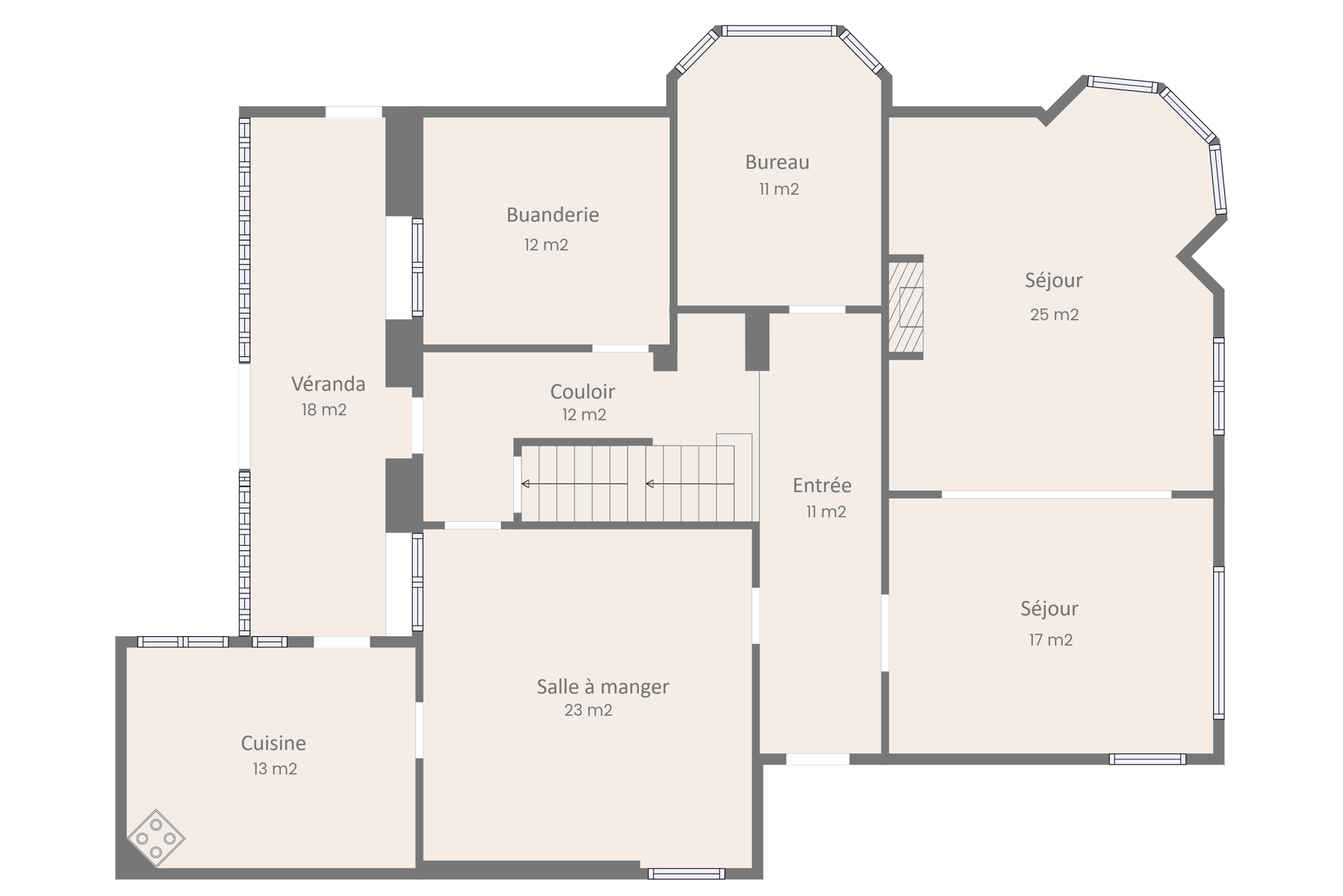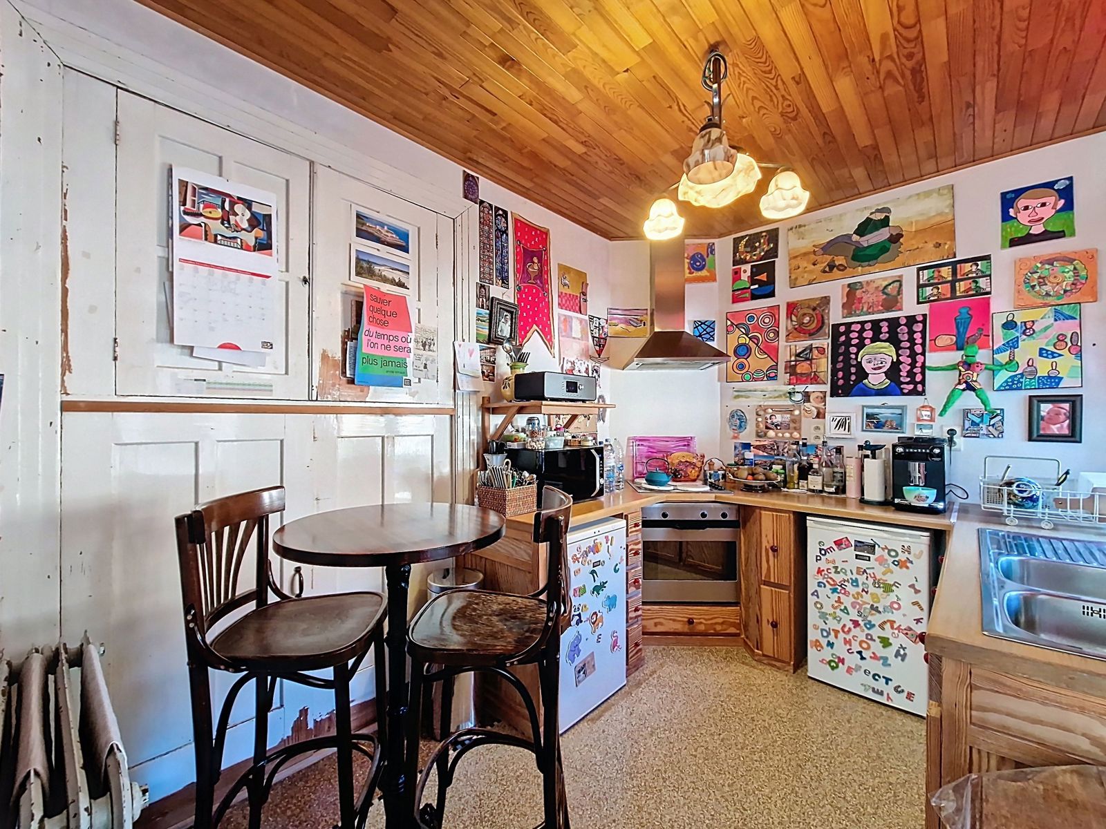 – À gauche du hall, une salle à manger offrant un accès direct à la cuisine