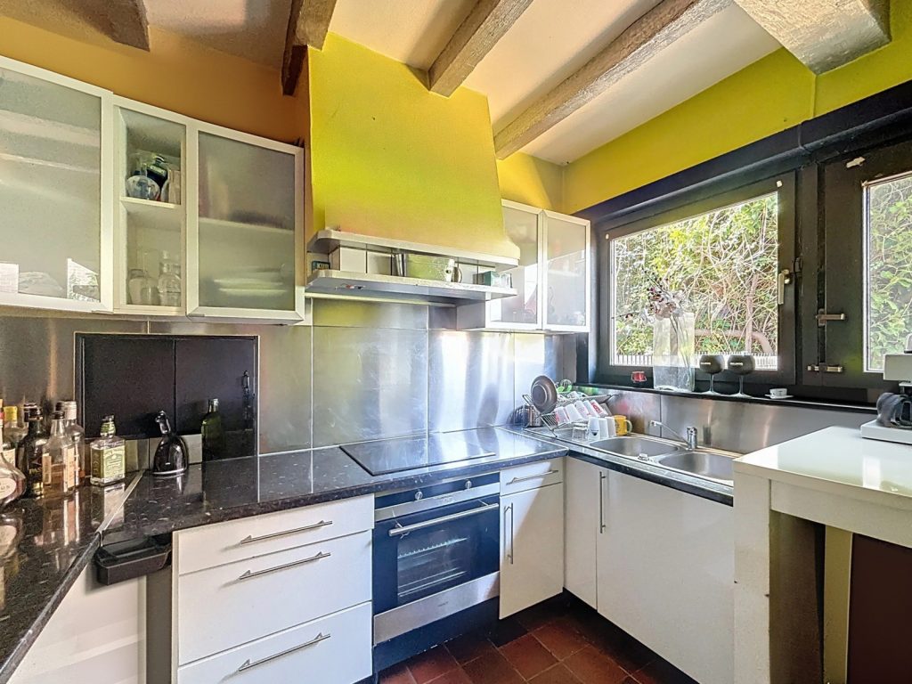 La maison dispose également d’une cave et d’un grenier de stockage. Vous y trouverez une pompe à chaleur dans le séjour ainsi que des panneaux photovoltaïques, avec une production de 4100 kWh/an.