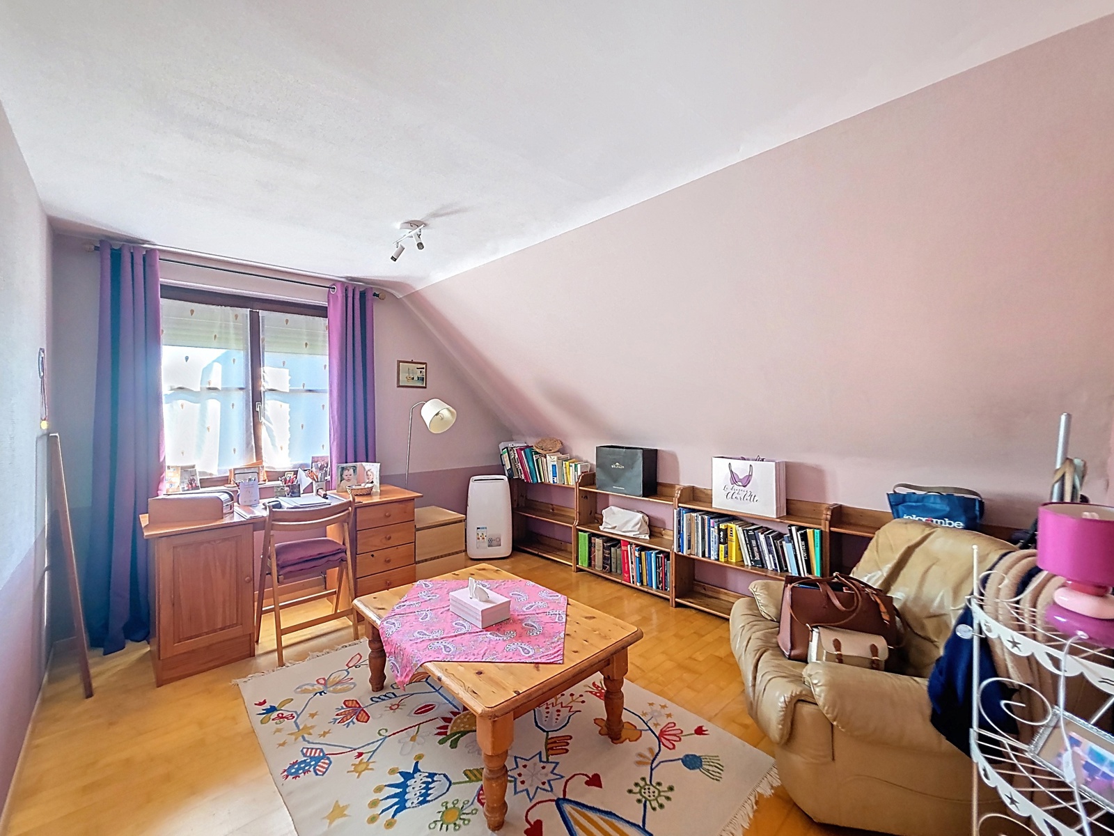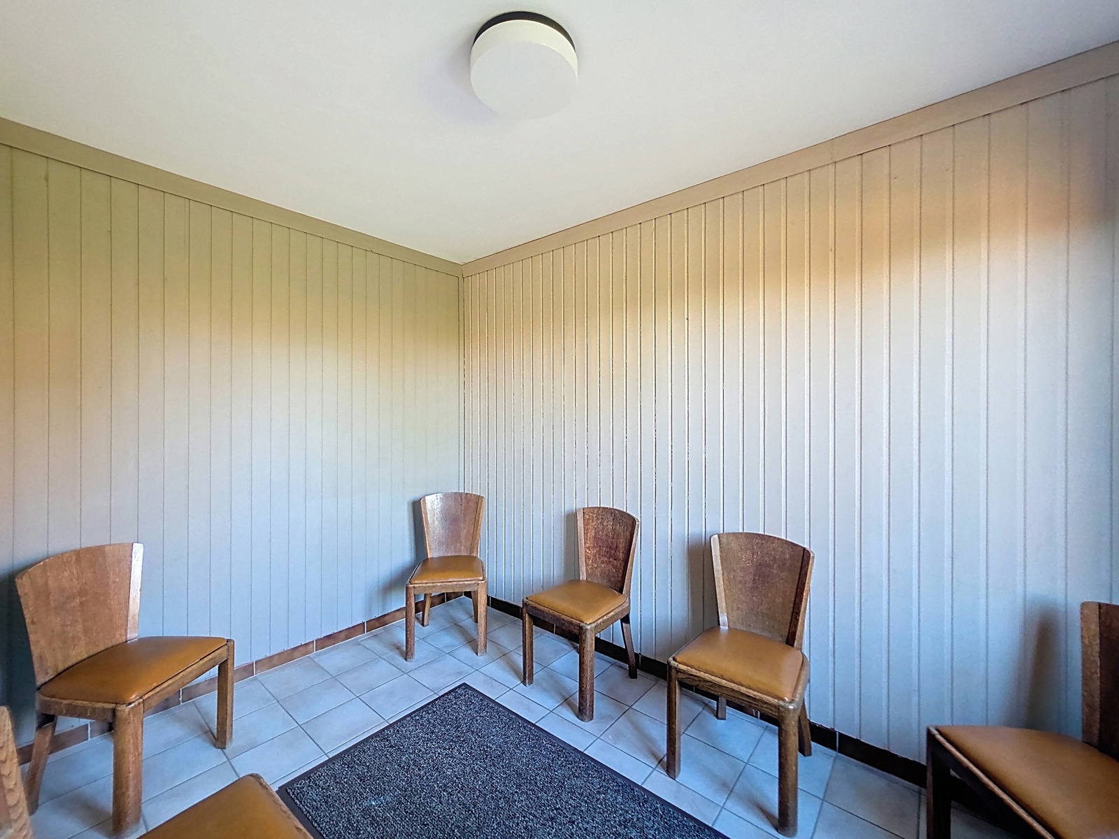 Partie professionnelle : Un hall d’entrée indépendant (accès par la gauche de la maison) avec salle d’attente, cabinet/bureau de 18m², salle d’archives et WC.