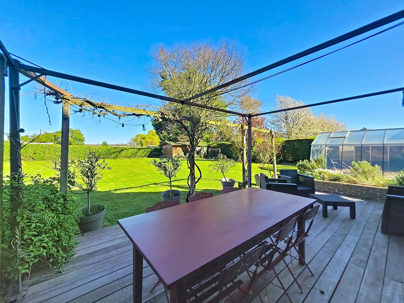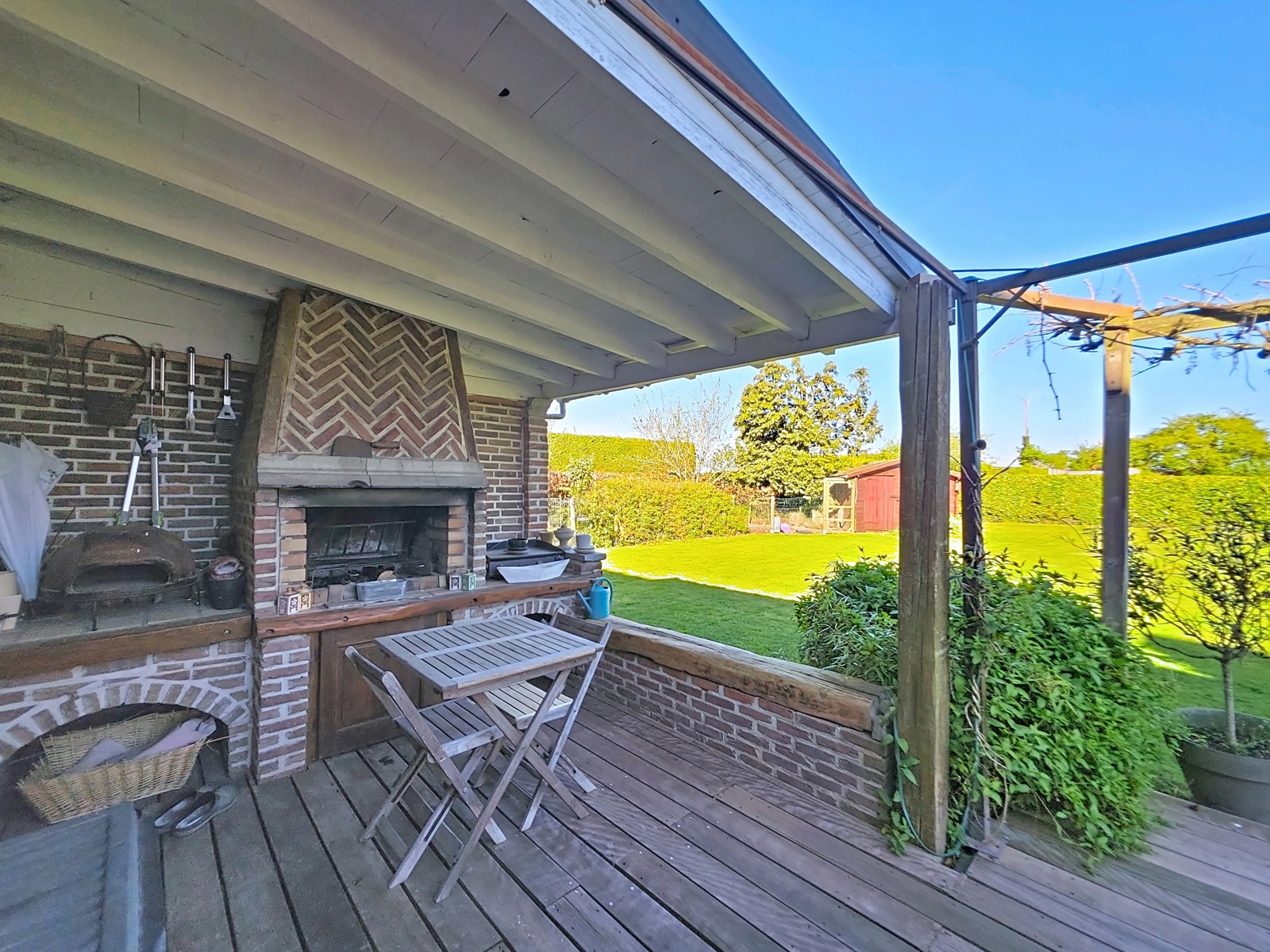 Extérieurs : Un grand parking privatif, une terrasse de +- 30m², une serre, deux abris de jardin. Petit + pour les amateurs de promenades : un accès direct sur le bois du Caillou-Qui-Bique juste à côté de la maison.