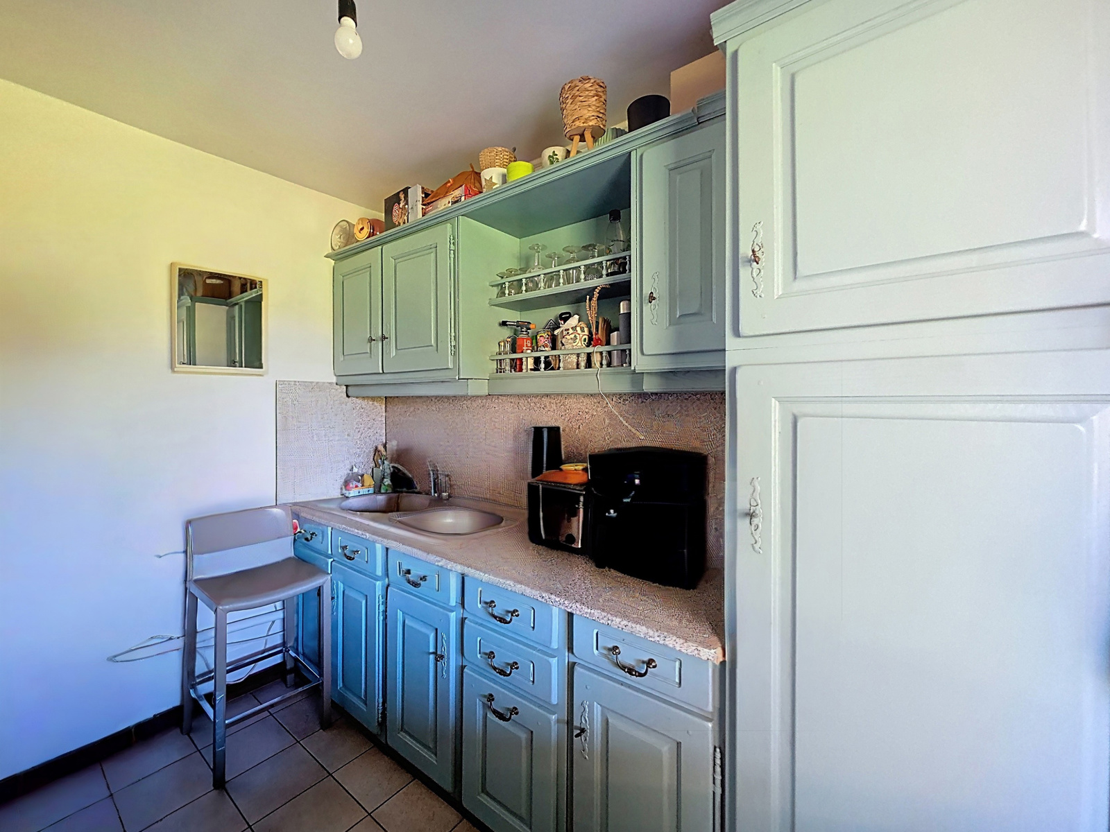 Partie privée : Un hall d’entrée avec WC et vestiaire, un vaste séjour de 45 m² (salon avec insert bois et salle à manger) ouvert sur une cuisine entièrement équipée, et une arrière-cuisine.
