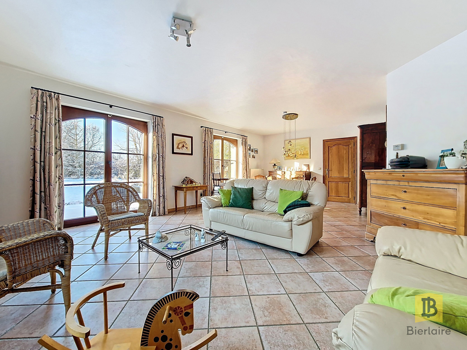 Spacieux séjour lumineux offrant une vue agréable sur le jardin